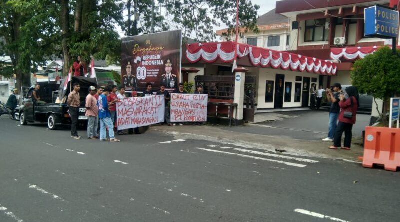 Ternate – Solidaritas 11 Masyarakat Adat Maba Sangadji Menggugat yang digerakkan oleh mahasiswa di Ternate melakukan aksi di depan Polda Malut dan Kejaksaan Tinggi Maluku Utara, pada Rabu, 13/08/2025.